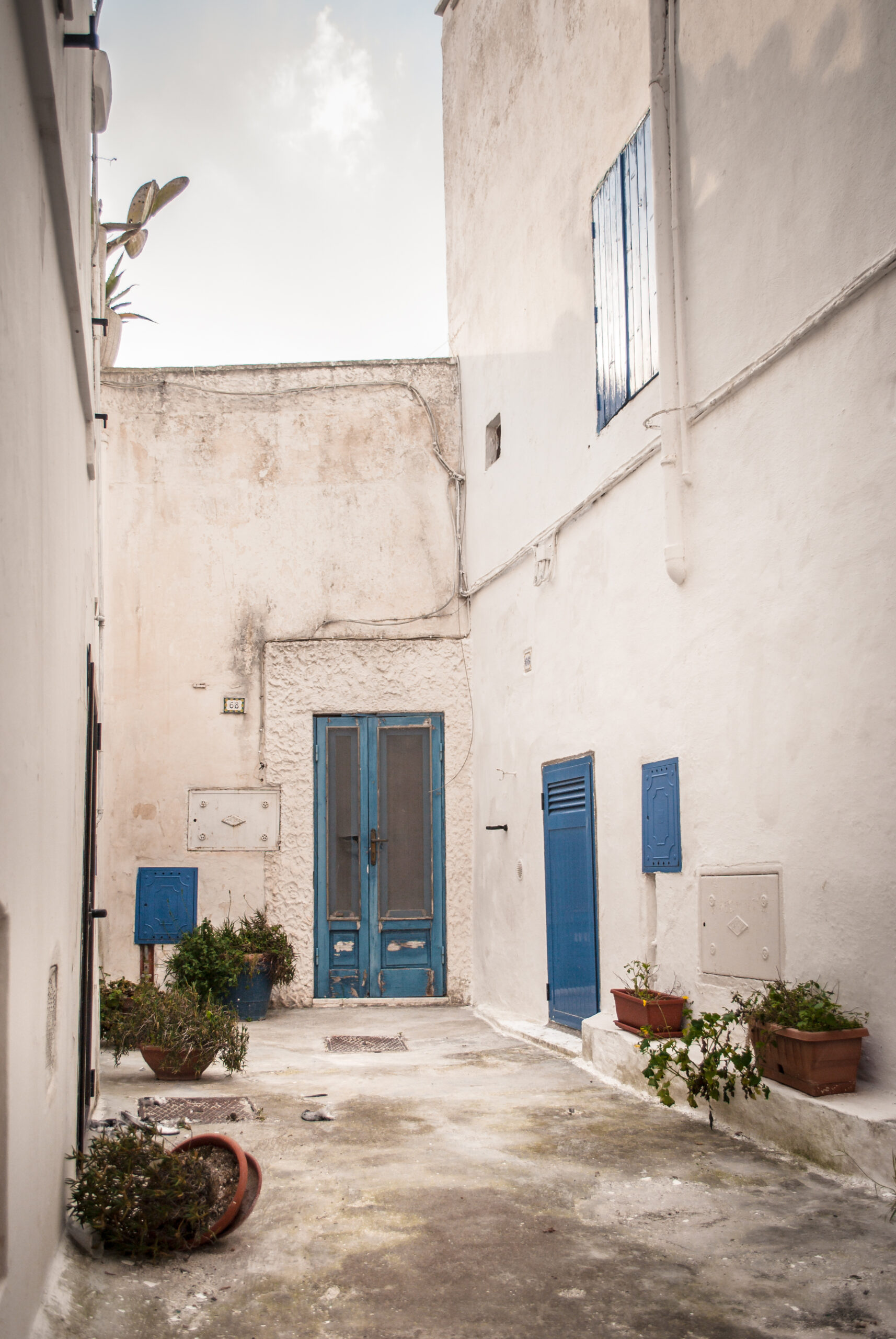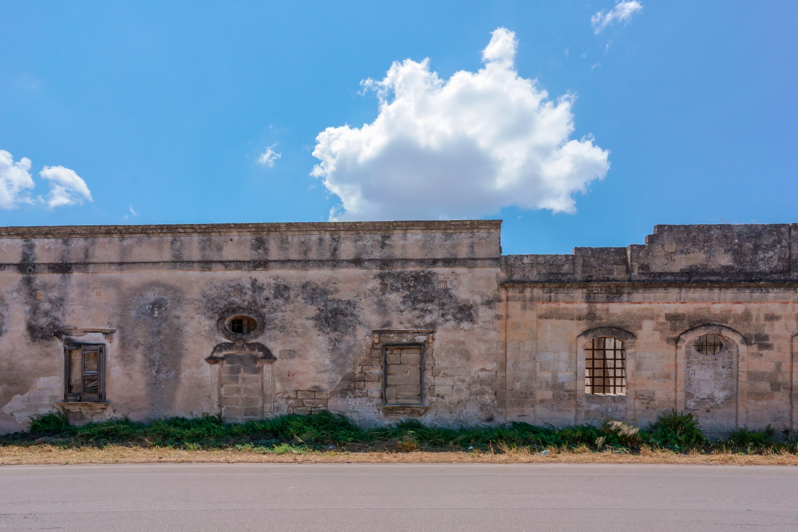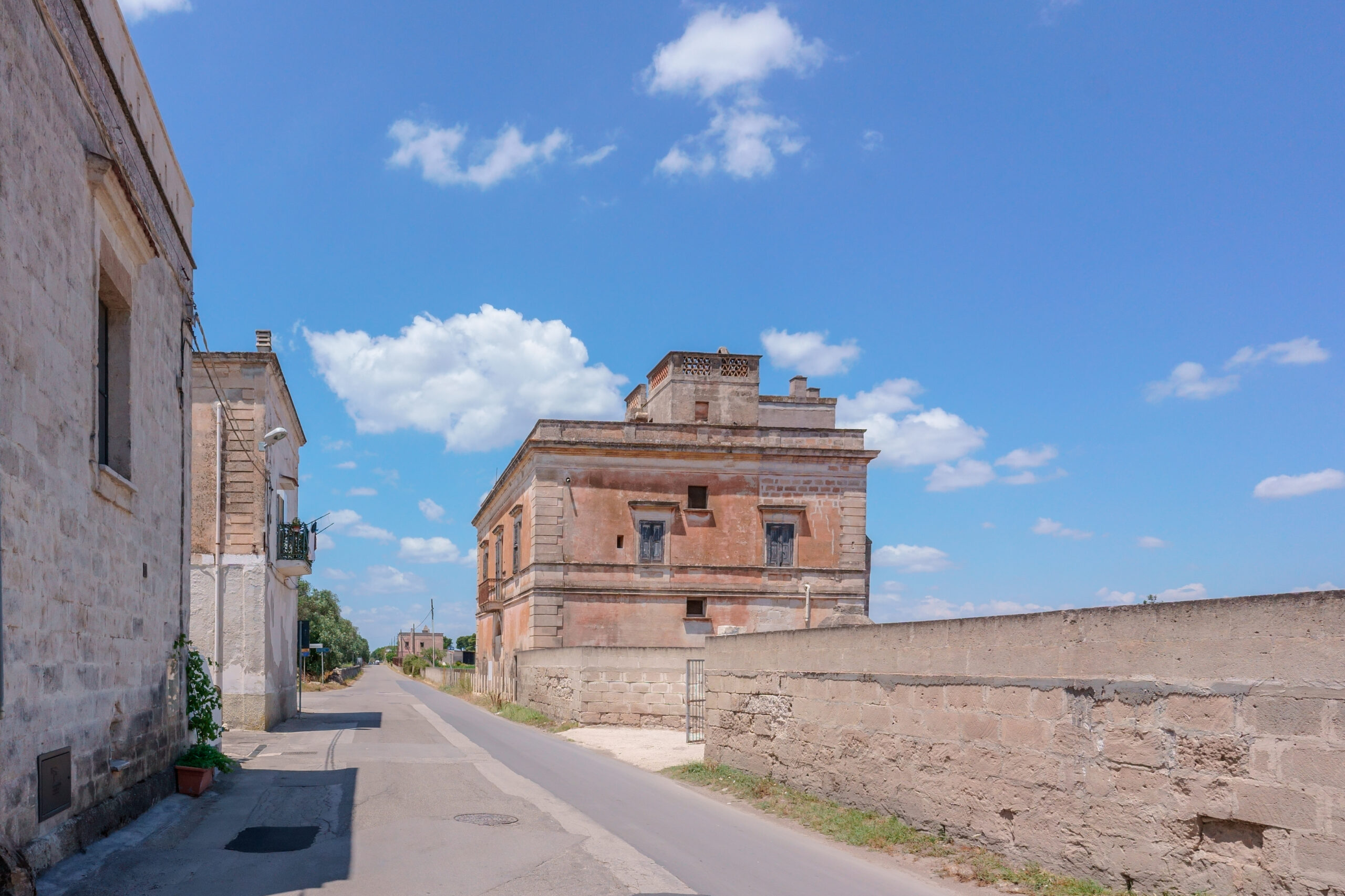 Tufo bianco bruciato dal sole contrastato con colori che richiamano all’estremo sud. Siamo il mare, siamo il sole, siamo il vento. Siamo nella terra del Salento