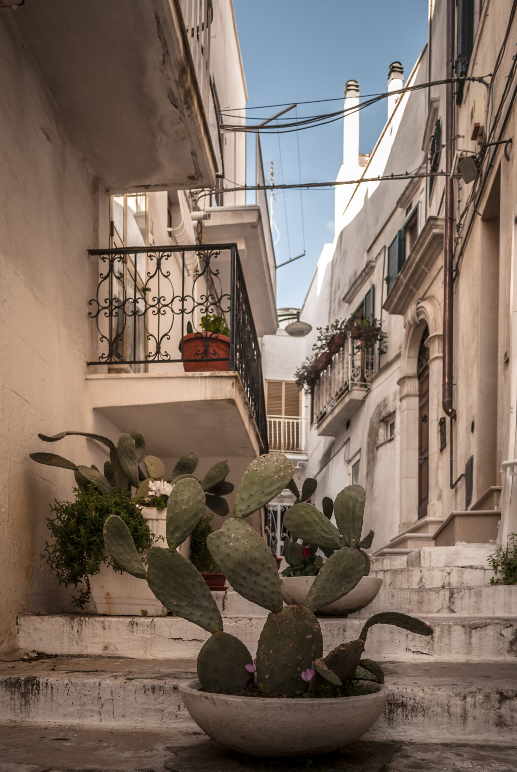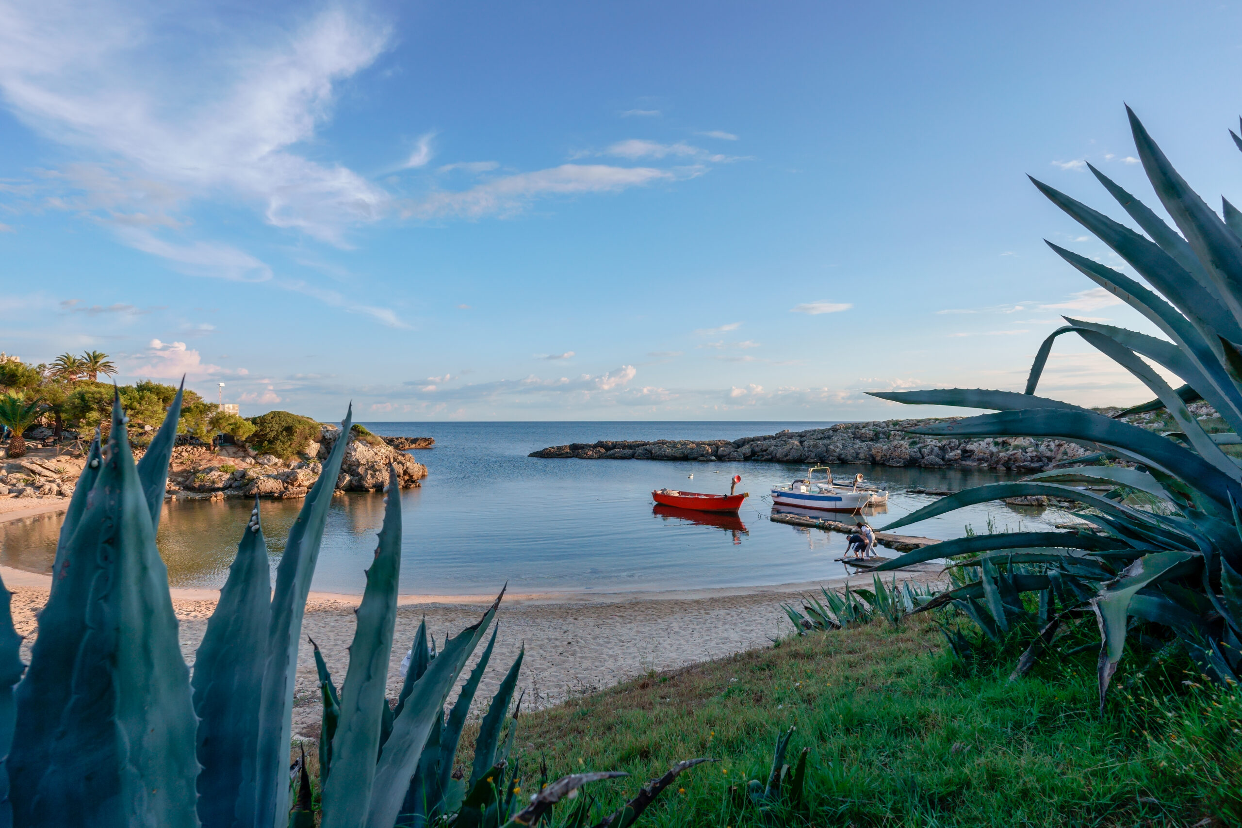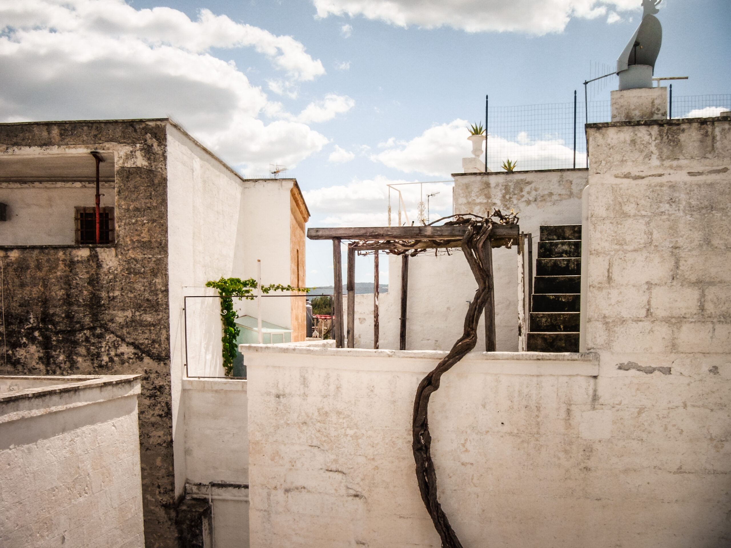 Tufo bianco bruciato dal sole contrastato con colori che richiamano all’estremo sud. Siamo il mare, siamo il sole, siamo il vento. Siamo nella terra del Salento